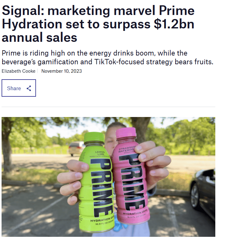 Co-founded with KSI in 2022, Prime became one of the most visible sports drinks globally in under two years. Unverified reports suggest roughly $565M in revenue between December 2022 and December 2023. Logan and KSI are promoters with equity, likely somewhere between ten and twenty percent combined.